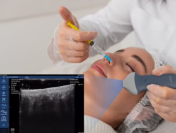 Die hochfrequente lineare Sonde des Viatom 8P visualisiert präzise die Hautdicke, was für Eingriffe wie Facelifts, nicht-chirurgische Nasenkorrekturen (NSR) und Injektionen von entscheidender Bedeutung ist. Die automatische Gefäßmessung im Farbdoppler-Modus erhöht die Sicherheit bei plastischen Operationen wie Hautfüllern zusätzlich, um das Risiko eines Gefäßverschlusses zu minimieren.