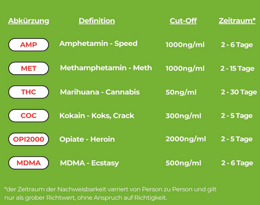 methamphetamine, opiates, marijuana and ecstasy-MDMA. The test system is an